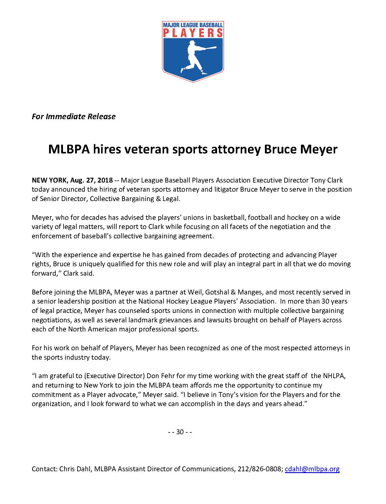 Mlbpa Communications On Twitter Mlbpa Hires Veteran Sports Attorney Bruce Meyer Https T Co Zozx8bn47u Https T Co Aond2m1w2h Twitter